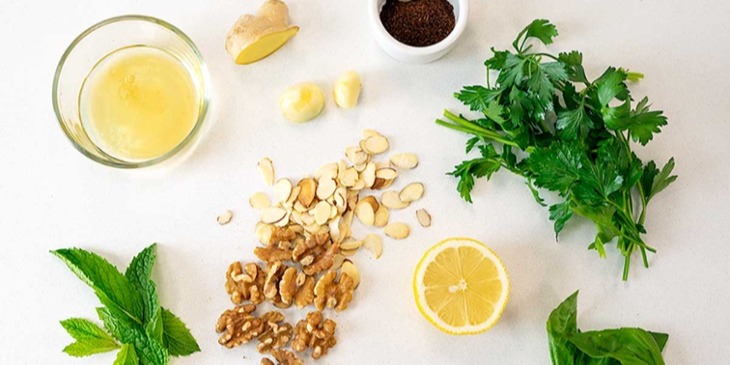 This refreshing almond and walnut tabbouleh recipe is a vegan, keto, paleo, and clean-eating friendly twist on the classic Lebanese tabbouleh salad. This tabbouleh is prepared with parsley and basil tossed with nutmeg, sumac, and freshly minced garlic and ginger.