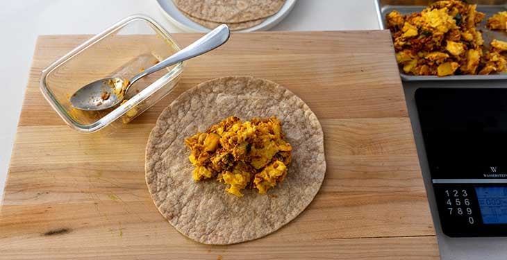 Step 3: Warm Tortillas, Weigh 5 ounces of Egg Mix